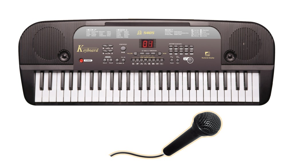 - Elektronické piano s celkem 54 klávesami. Součástí balení je mikrofon včetně audio výstupu a dobíjecí USB kabel. Možnost napájení přes 6xAA baterie – nejsou součástí balení. Piano má v nabídce 6 demo písní, 16 tónů, 10 rytmů, 8 bicích nástrojů, funkci výuky hry na piano, možnost nastavení hlasitosti a nastavení rychlosti tempa a funkci nahrávání. Menu se zobrazuje na praktickém LED displeji. Velikost produktu 64×24×10cm.