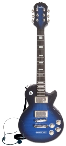 - Elektronická rocková kytara „Gibson“ s head setem a bezdrátovým připojením – můžeš si vybrat s 8 demosongů nebo 2 demo songy a 2 rytmy, 3 zvůkové efekty, kontrola hlasitosti, bezdrátové připojení k vašemo smartphone, mp3 nebo pc, mikrofon se sluchátky, pás přes rameno, automatické vypínání.