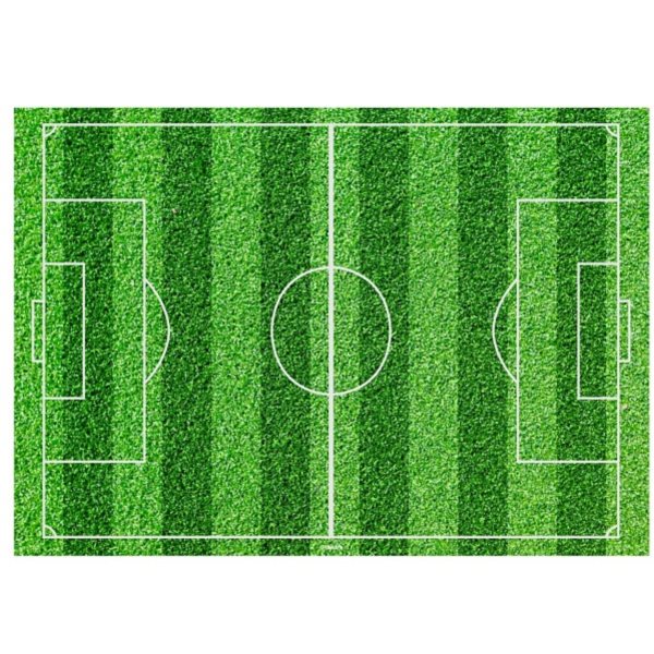Jedlý fondánový list s motivem obdélníkového fotbalového hřiště bude nádhernou ozdobou narozeninového dortu pro malé i velké fanoušky fotbalu.