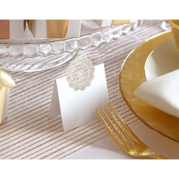 Jemná a elegantní jmenovka na svatební stůl vyrobená z perleťového papíru. Zasedací kartičky na svatbu velmi zjednoduší organizaci a všichni hosté ihned poznají, kde je jejich čestné místo u stolu.
