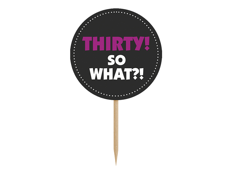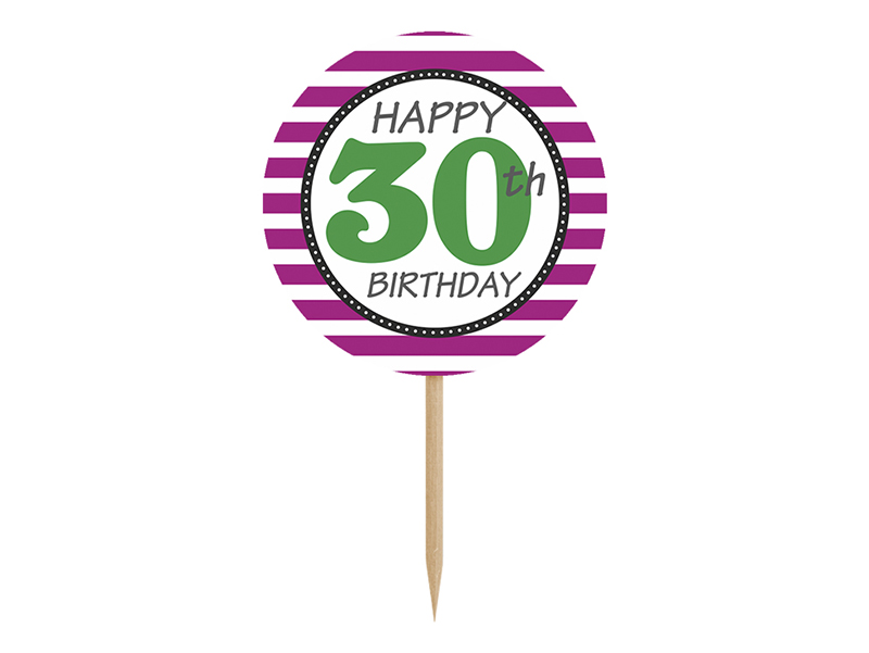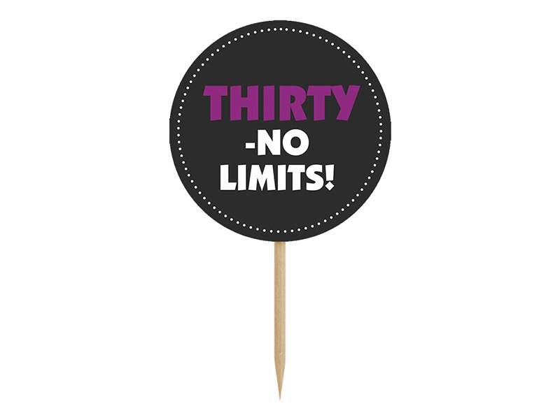Zdobičky na cupcaky Třicet, mix vzorů, výška 9,2 cm. (1 ks / 6 ks)