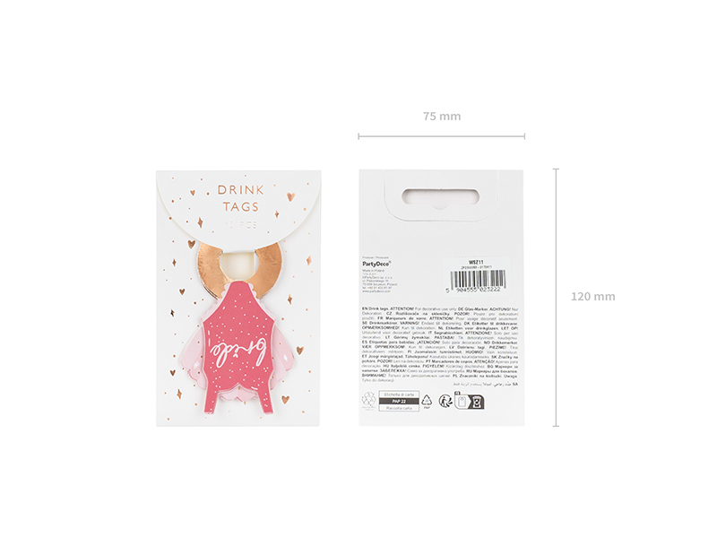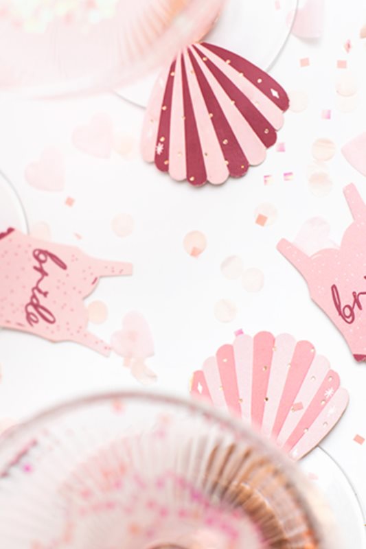 Visačky na nápoje Swimsuite a Shell, mix barev, sada obsahuje 10 prvků (5 kusů ve 2 provedeních), velikost cca 8 x 5 cm. (1 ks / 10 ks)