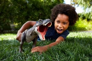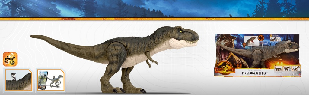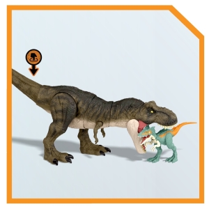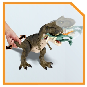 - Připravte se na vzrušující dobrodružství s tímto velkým druhem dinosaura inspirovaného Jurským světem: Nadvláda. Tyrannosaurus Rex se zvuky má vylepšené žvýkání, pohyb ze strany na stranu a má chladný mramorovaný vzhled! Zvuky podporují žvýkání a ničivé pohyby během akční hry s dinosaurem. Stisknutím tlačítka spustíte kousání a řev. Pohybem ocasu na stranu dosáhnete dramatických úderů a zvuků. Je to nezbytný doplněk každé sbírky hraček dinosaurů a umožňuje dětem zopakovat si klíčové scény z filmu. Pro děti od 4 let.