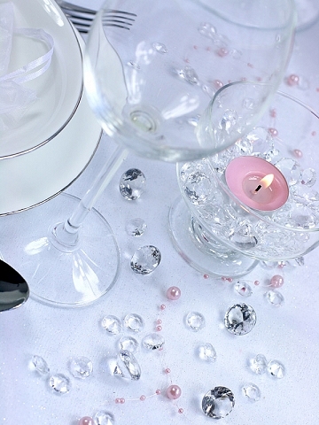 Tyto diamanty jsou elegantní ozdobou svátečního stolu. Dekorace s drahokamy je ideální výzdobu svatební tabule, doplněk svícnů nebo narozeninovou či tématickou párty. Vypadají také efektně ve skleněných nádobách se svíčkami.