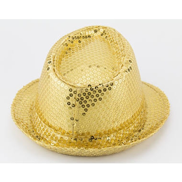 | Zlatý flitrový klobouk na párty a oslavy. Tento nápadný klobouk je třpytivé zlaté barvy a plně zdobený … |