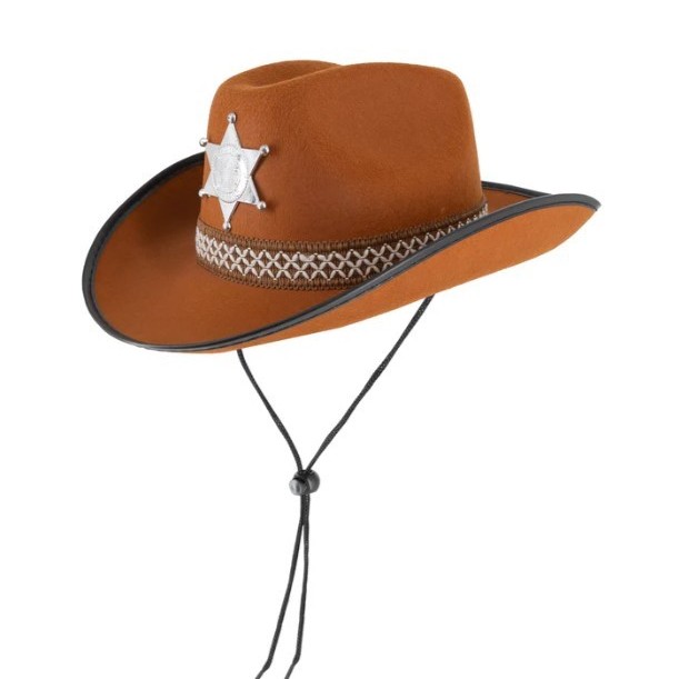 Hnědý kovbojský klobouk s šerifskou hvězdou