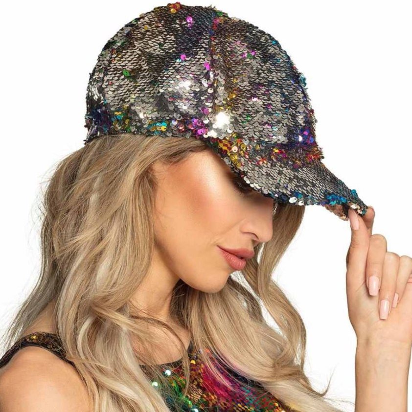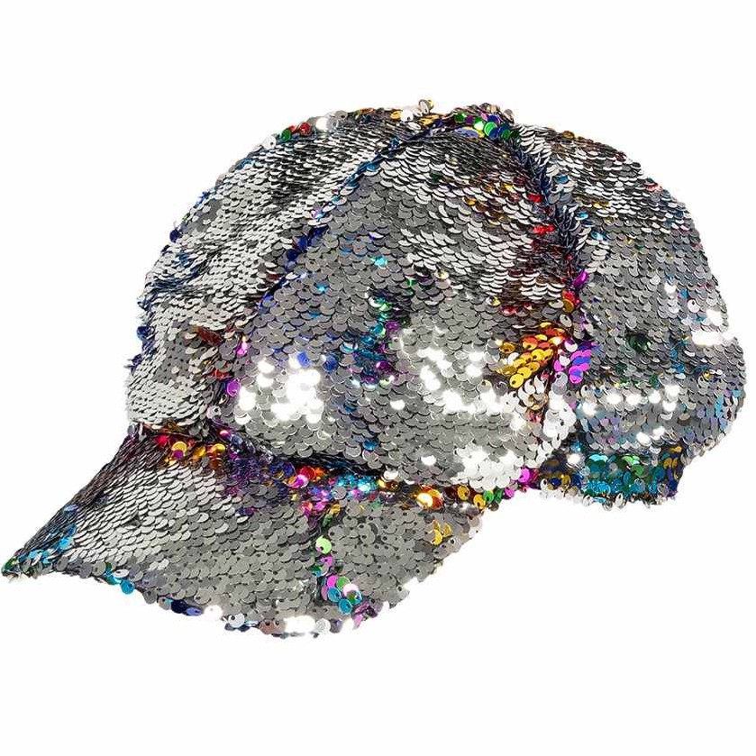 Nechte světlo reflektorů odrážet se od flitrů a dodejte své párty lesk v této duhové kšiltovce s flitry na diskotékové, karnevalové nebo tématické akci.