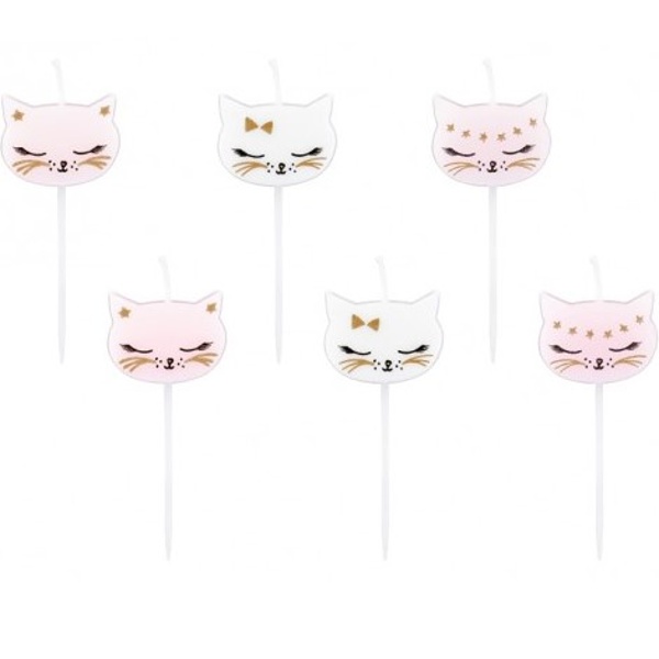 Krásné narozeninové dortové svíčky ve tvaru kočičí tváře udělají radost každé malé fanynce těchhle chlupatých mazlíků.