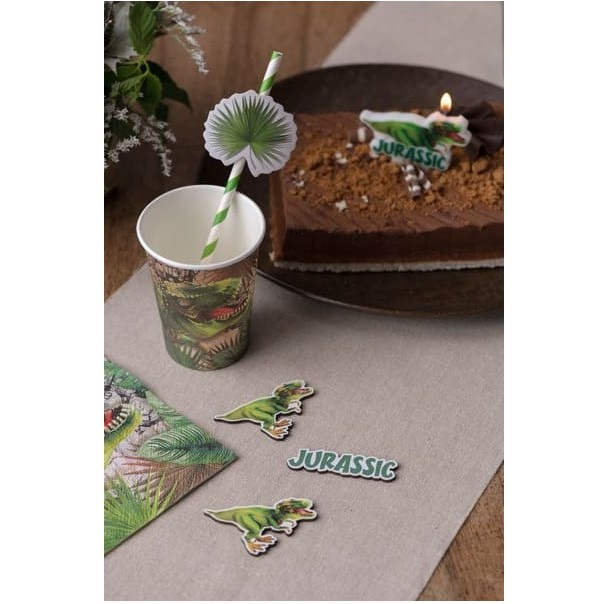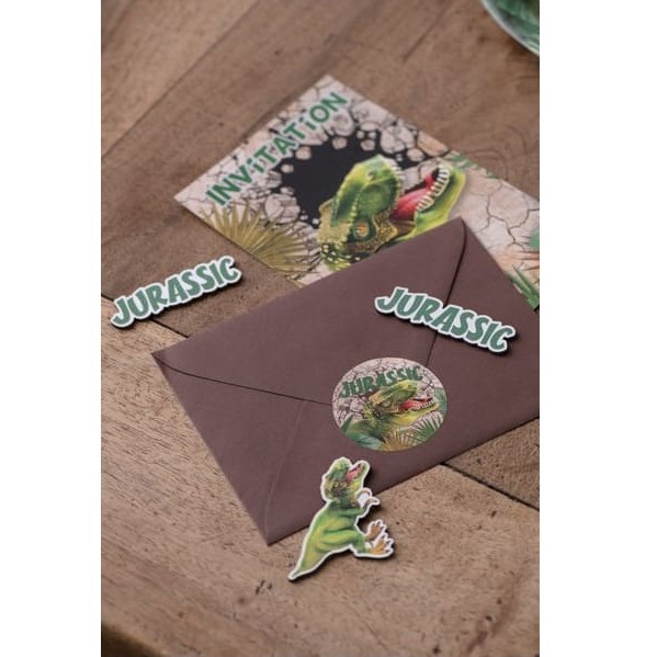 V balení naleznete 5 ks konfet Dinosaur o velikosti 6,5 x 4,5 cm a 5 ks nápisů Jurassic o velikosti 6,5 x 1,5 cm.