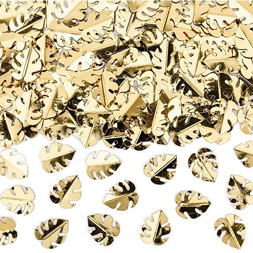 Konfety na stůl ve tvaru zlatých listů.