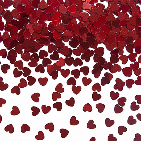 Konfety na stůl ve tvaru malých červených srdíček vám stylově ozdobí narozeninovou, valentýnskou nebo svatební párty.