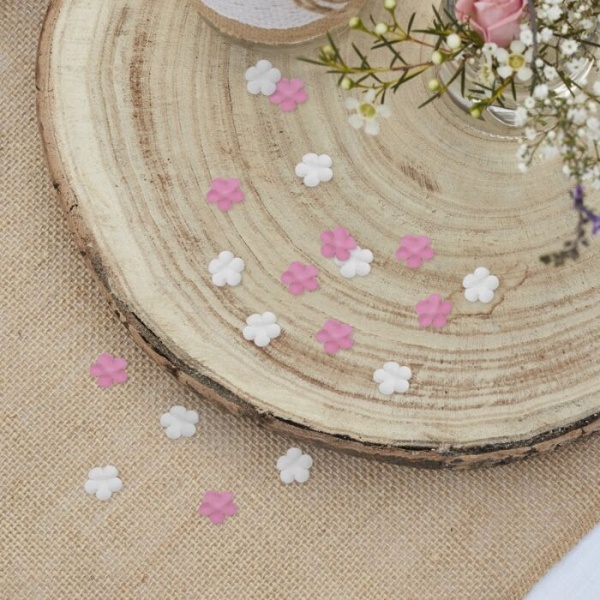 | Konfety na stůl v podobě okvětních bílých a růžových lístků. Ideální doplněk na výzdobu stolování na narozeninové, … |