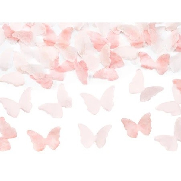 Vystřelovací konfety Vaši party skvěle oživí. Ideální pro svatby, rozlučky se svobodou, narozeniny nebo narození holčičky. Tyto konfety vyplní prostor jemnými motýlky ve dvou odstínech růžové a vytvoří nezapomenutelný vizuální efekt.