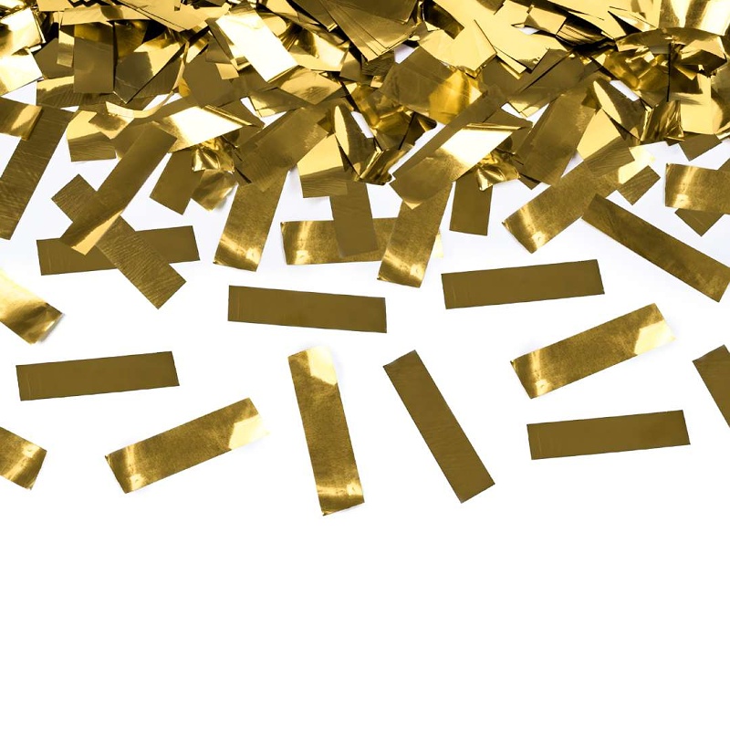 Konfetový déšť zlatých proužků je výborný nápad pro narozeniny, plesy, karnevaly, svatby, stužkování a další jiné slavnostní příležitosti. Fóliové konfety mají kovovou strukturu , takže dobře odráží světlo, což dává vizuálně atraktivní efekt.