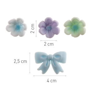 Cukrové dekorace na dort nebo cupcakes v podobě něžných kvítků a modré mašličky