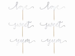 - sada 6-ti dekorací na dorty, cup cakes a jiné dobroty ve stříbrné barvě