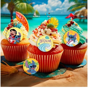 Tato barevná a pro děti lákavá dekorace Stitch umožňuje snadné umístění a je ideální pro zábavné zdobení cupcaků a malých dezertů.