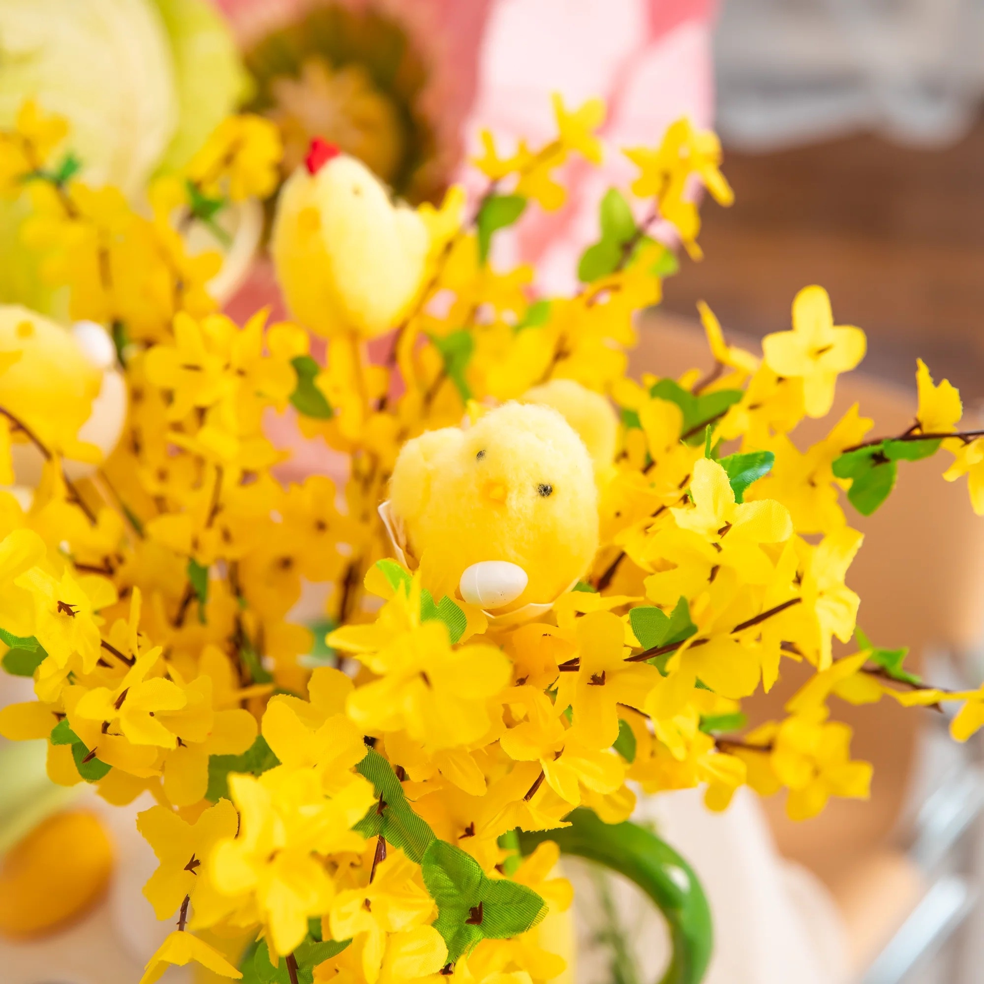 Díky dřevěné špejli se dekorace velmi snadno používá a můžete ji kombinovat s dalšími velikonočními ozdobami, vajíčky, zajíčky či živými květinami a vytvořit tak originální výzdobu.