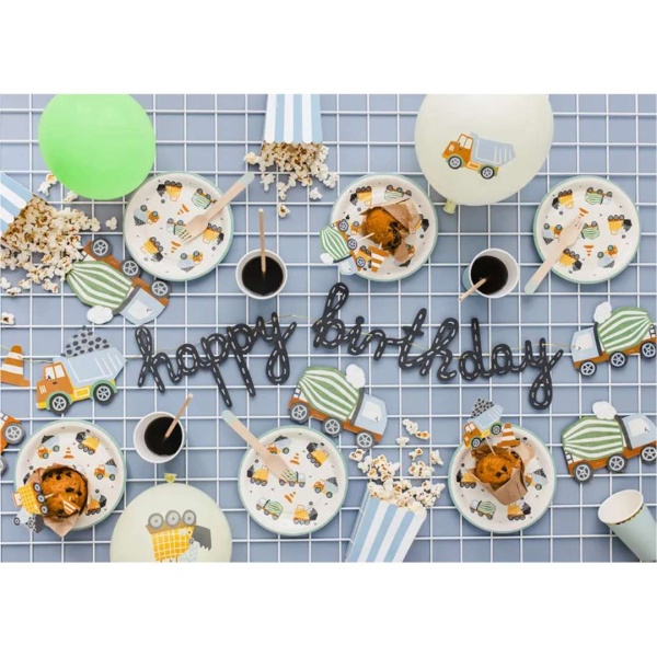 S ozdobnými zápichy ve tvaru stavebních vozidel a dalších stavebních pomůcek můžete stylově a efektně ozdobit vaše cupcakes nebo muffinky.