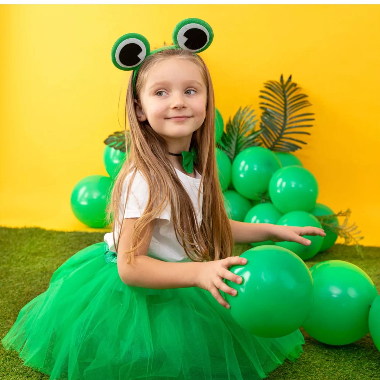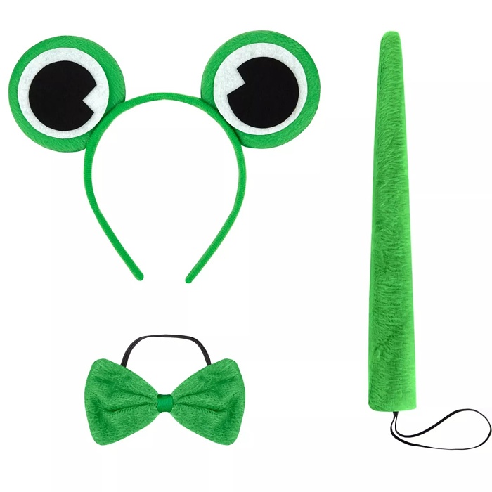 Párty doplňky, které doplní kostým žáby včetně čelenky, motýlka a ocásku.