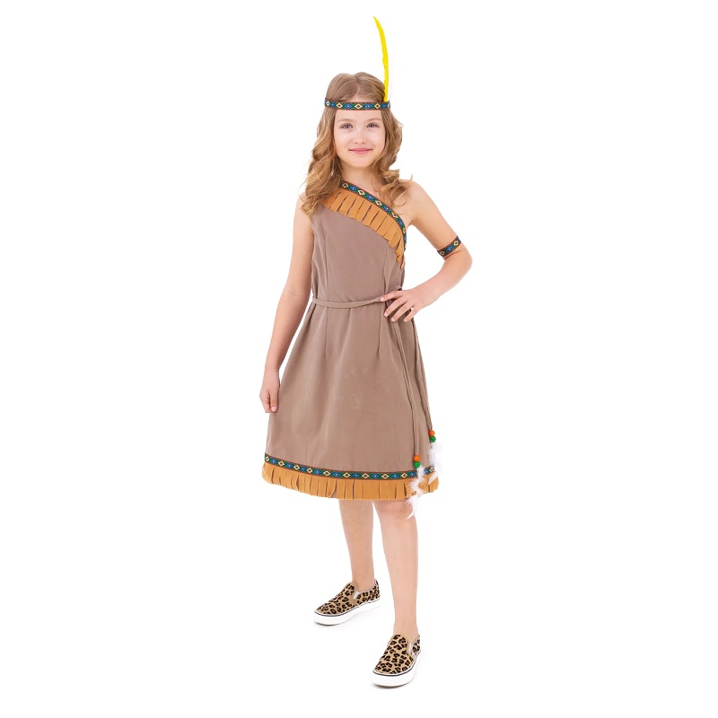 Indiánský kostým pro holčičku zahrnuje všechny potřebné prvky, které dodají kostýmu realistický vzhled.