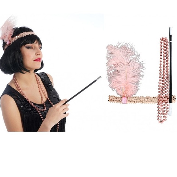 Set Charleston ve starorůžové barvě je 3.dílná sada doplňků na tematickou párty Velký Gatsby, retro párty 20. léta, nebo kostýmní retro párty.