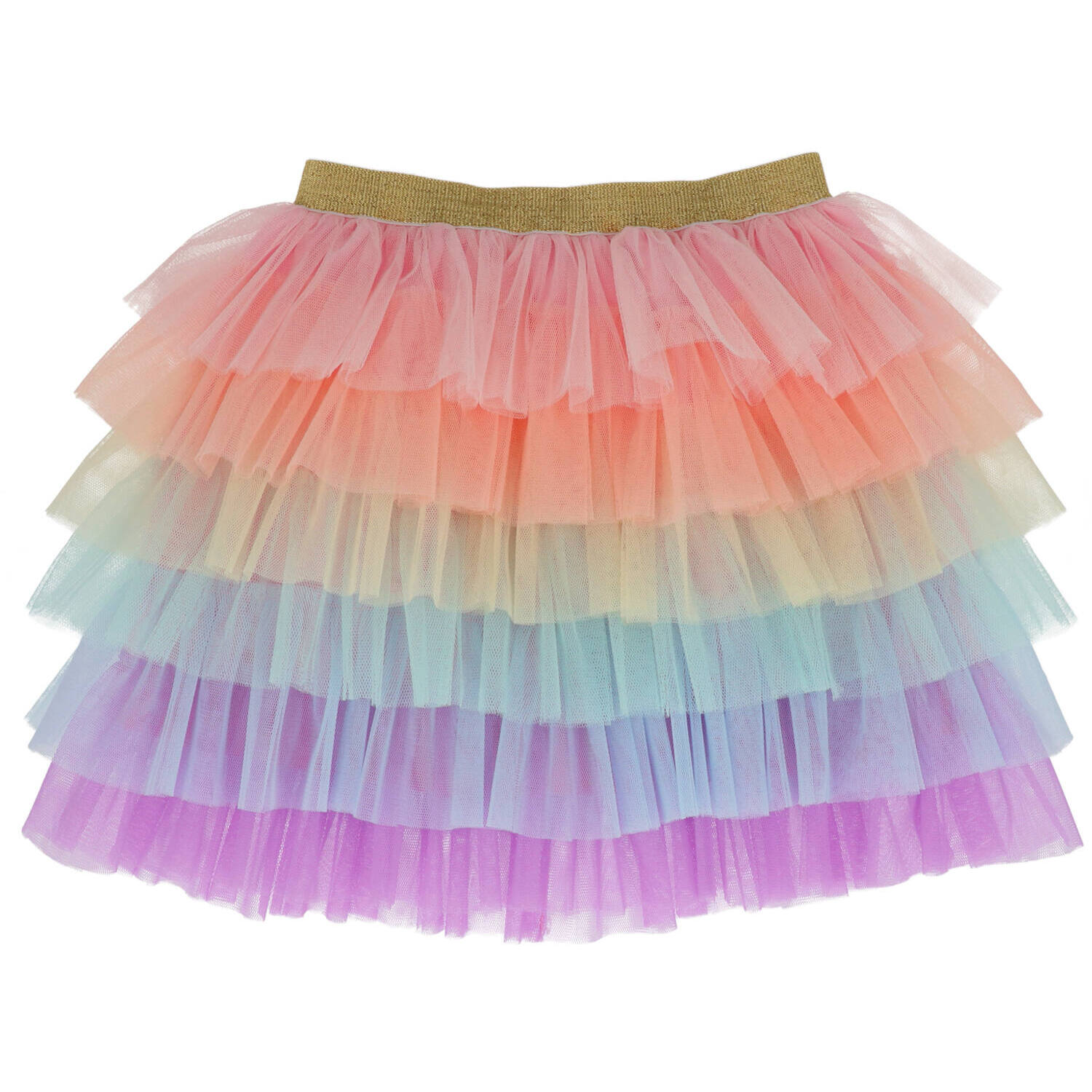Obsahuje čelenku a sukýnku. Sukně je vyrobená z růžové látky podobné saténu, díky čemuž se velmi pohodlně nosí, se zlatým elastickým pasem. Od pasu se několik vrstev tylu v pastelových barvách duhy kaskádovitě snáší dolů jako vodopád.