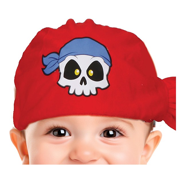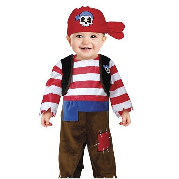 Sada obsahuje kombinézu , která napodobuje klasický pirátský outfit, s červenobílou pruhovanou košilí, černou vestou a hnědými kalhotami s našitými detaily. Navíc červený šátek s potištěnou lebkou doplňuje vzhled, takže vaše ratolest bude vypadat jako skutečný rebelský námořník.