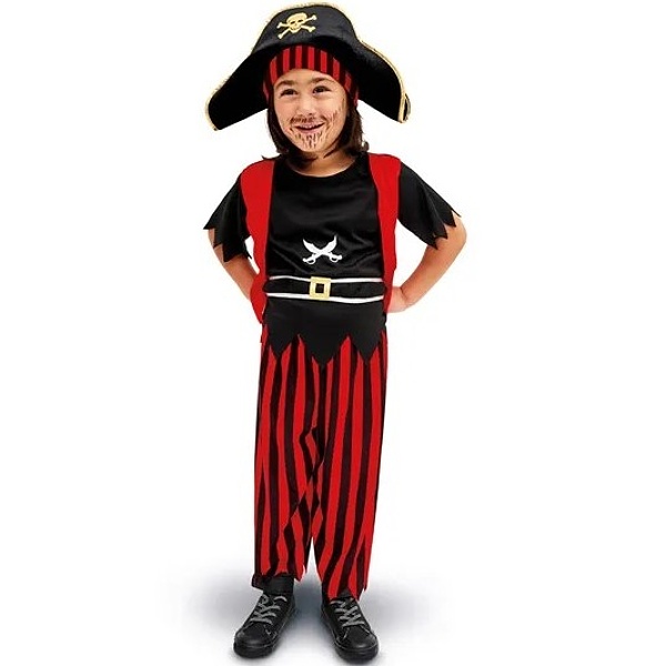 Dětský kostým Pirát je v černé, červené a bílé barvě se zlatými detaily