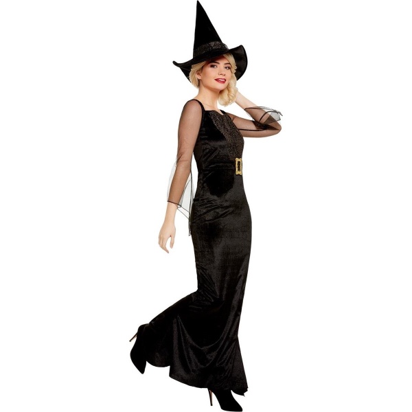 Skvěle padnou na každou čarodějnici, která se chystá na párty. Rukávy šatů zdobí jemný černý tyl a pásek se zlatou přezkou.