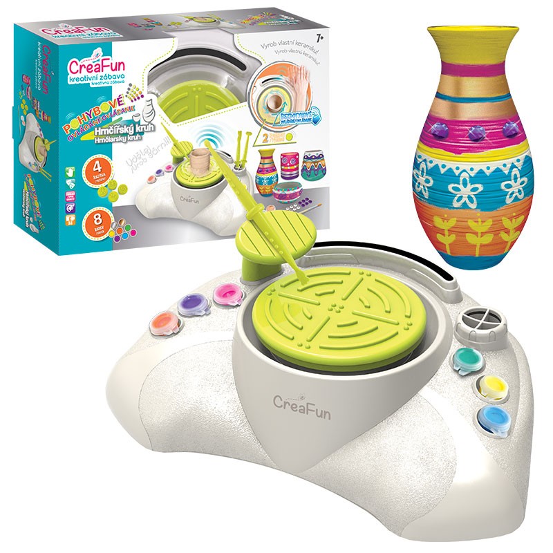 - Vstupte do fascinujícího světa hrnčířství s naší kompletní sadou CreaFun – Hrnčířský kruh se sensorem. Je to dokonalý set pro všechny kreativní děti starší 7 let, které milují tvoření a chtějí se naučit něco nového. Tento hrnčířský kruh přináší výjimečnou inovaci v podobě bezdotykového ovládání. Díky dvěma rychlostem otáčení si můžete vybrat, jak rychle nebo pomalu budete pracovat, což vám poskytuje maximální kontrolu nad tvorbou. Balíček obsahuje vše, co potřebujete k tvorbě svých vlastních keramických výrobků – hrnčířskou hlínu, pomůcky na zpracování hlíny, širokou paletu barev, razítka pro dekoraci, kamínky pro dodání jiskry a štětec pro precizní malování. Výhody produktu CreaFun – Hrnčířský kruh se sensorem: