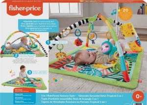 - Fisher-Price® Hrací dečka se žirafou 3 v 1 roste spolu s vaším děťátkem od novorozence až po batole, a po celou dobu nabízí dětem smyslové zážitky. Novorozenci mohou ležet na měkké hrací podložce a nad nimi je na obloucích zavěšeno 6 hraček, které stimulují jejich smysly. Při hře na bříšku lze nastavitelný oblouk posunout dolů, aby byly hračky v dosahu, zatímco polštářek ve tvaru žirafy pomáhá dítě při hře podpírat. Hračka lenochoda s hudbou a světly navíc zajistí, že hraní bude stále zábavné, až vaše děťátko přejde z chvil na bříšku do sezení a hraní si na cestách.