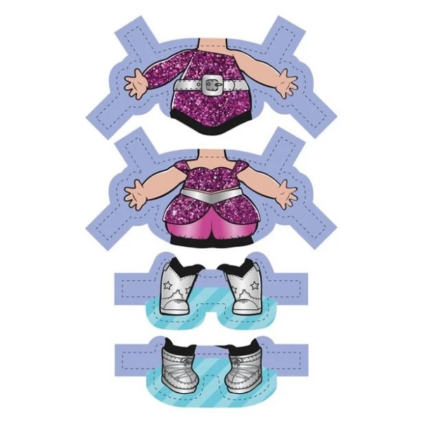 Balení obsahuje 2 papírové panenky se 4 kusy oblečení.