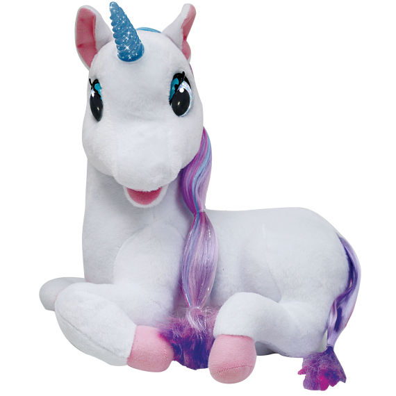Pohádkový plyšový jednorožec Luna ti poví 3 pohádky (Popelka, Zlatovláska a tři medvědi, Na vlásku). Luna mrká očima a její roh svítí magickými barvami. Navíc je to opravdu krásná hračka