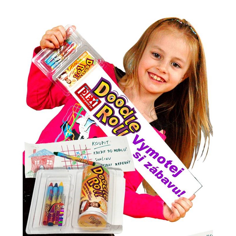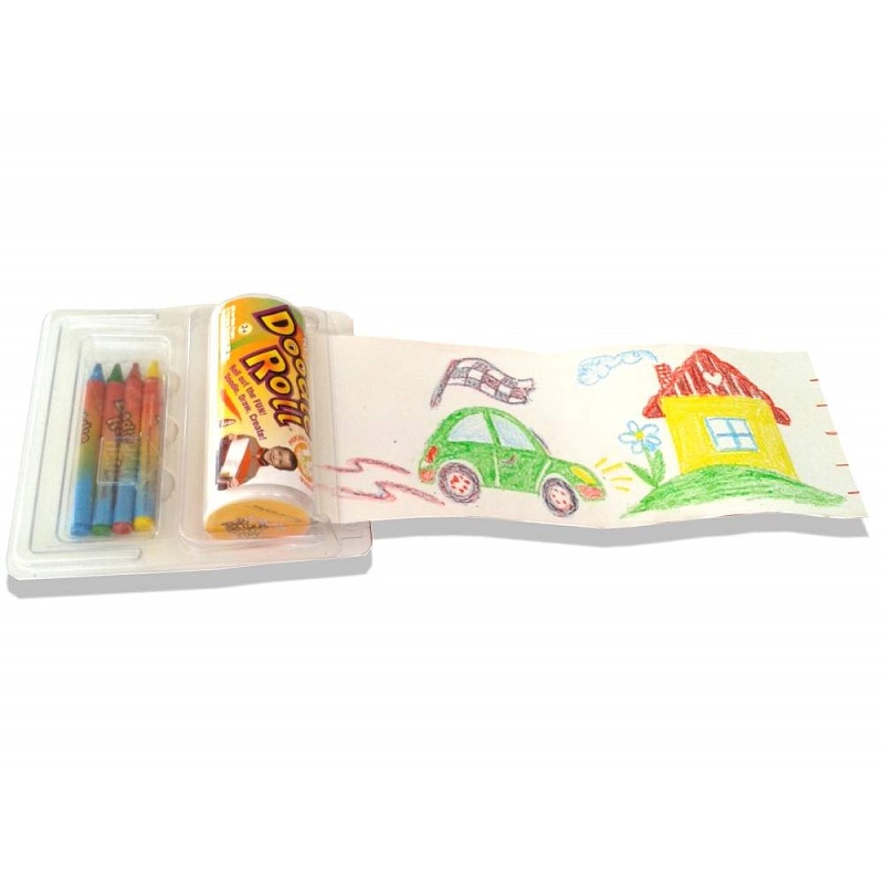 Všestranná kreativivní sada Doodle Roll se 4 pastekami a téměř 4,5 m papíru. Kreativní výrobek s univerzálním použitím - obrovký kus papíru 4,5m, 4 barevné kvalitní pastelky a přenosné patentované pouzdro se zubatým okrajem - přes něj snadno utrhnete papír dlouhý, jak právě potřebujete.Umožní malovat a tvořit kdykoliv a kdekoliv. Děti s ní mohou vytvářej obrázky, plakáty, nápisy, cedulky, skládačky nebo hraj hry na papíře. Speciální pouzdro chrání papír před zmačkáním a udrží pastelky v zásobníku, aby se neztratily.
