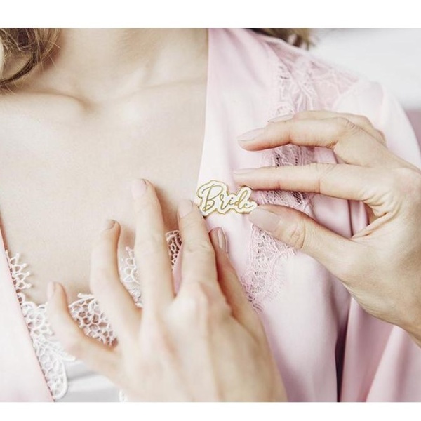 Nezapomeňte si ale připnout tento originální odznak BRIDE, ať hned všichni poznají, že to právě Vy jste ta krásná budoucí nevěsta.