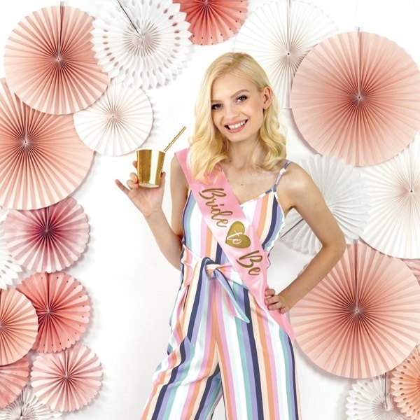 Šerpa "Bride To Be" v růžové barvě se zlatým nápisem Bride to be je pro budoucí nevěstu důležitým doplňkem na rozlučku se svobodou.