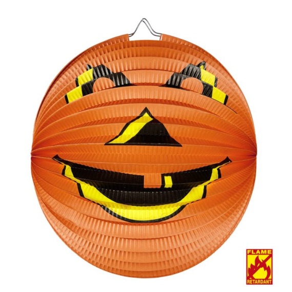 Kulatý lampion ve tvaru dýně je vyroben z nehořlavého materiálu.