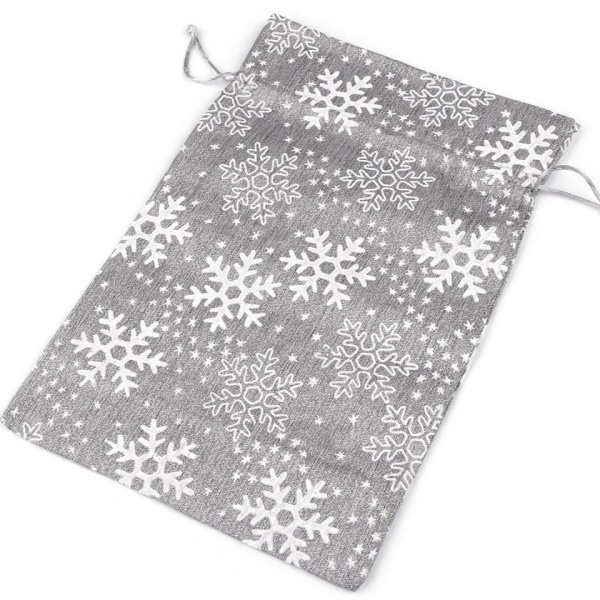 | Dárkový brokátový pytlík s potiskem sněhových vloček Stahuje se pomocí saténových šňůrek. Je to skvělý způsob, … |