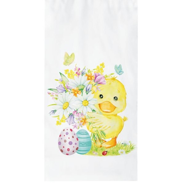 Igelitový sáček s motivem velikonočním žlutým kuřátkem, vajíčky a květinami