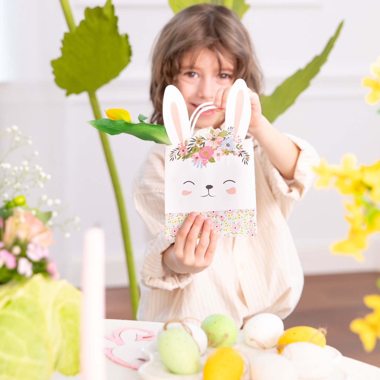 Tato dárková taška s velikonočním zajíčkem je okouzlujícím způsob, jak zabalit malé dárky a sladkosti. Její jedinečný design, inspirovaný velikonočním tématem učiní každé překvapení ještě kouzelnějším.