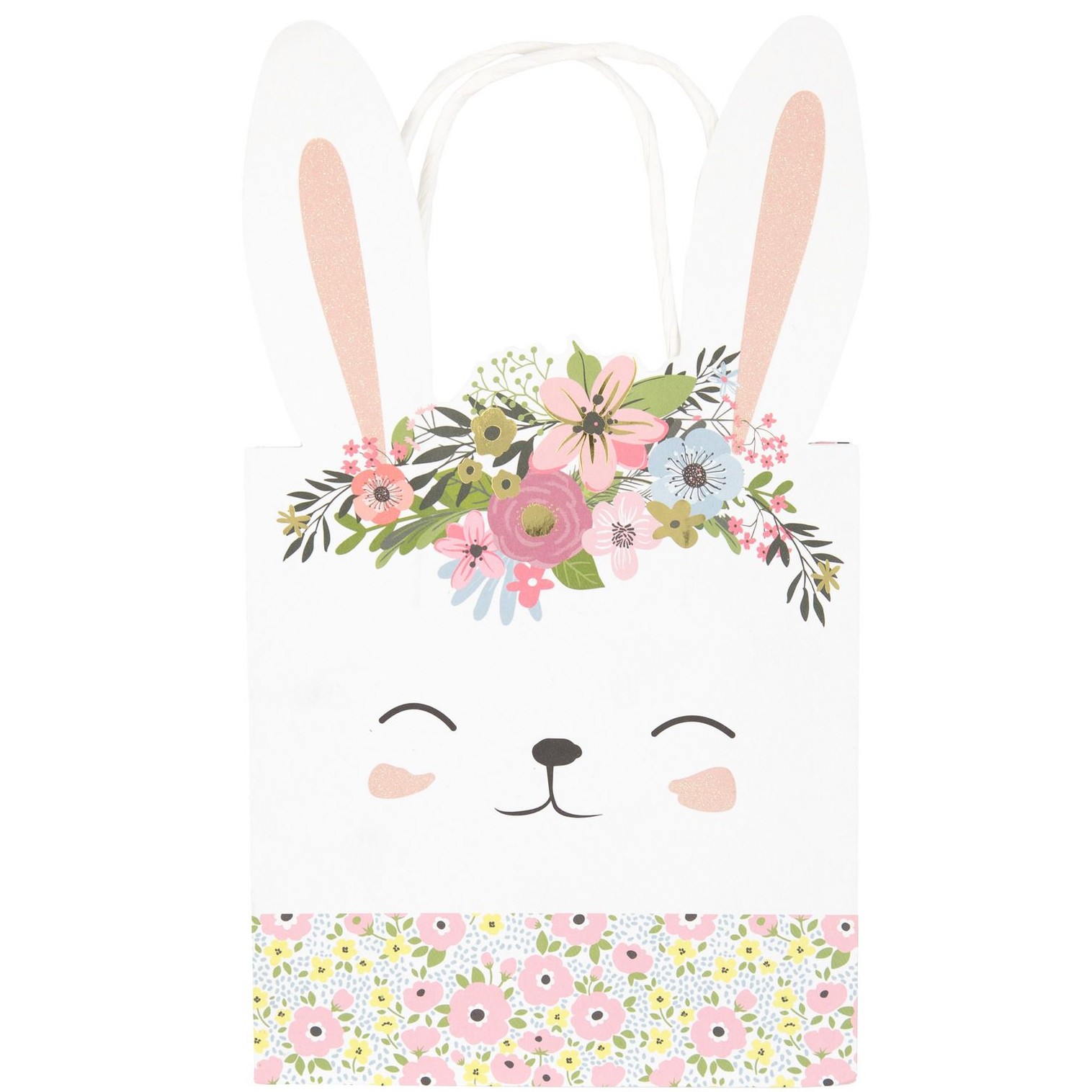 Dárková taška ve tvaru zajíčka s květinami.