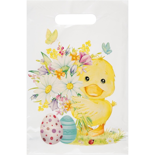 | Velikonoční igelitová taštička s potiskem žlutého kuřátka a vajíček. Ideální pro velikonoční nadílku balíčků pro … |
