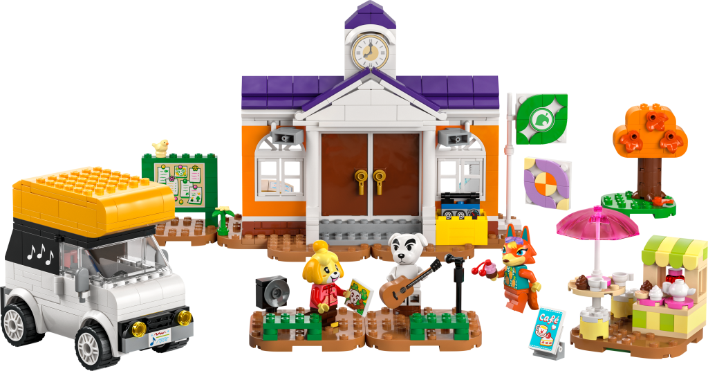 - Se 3 známými postavami z videohry Animal Crossing™ – Stavebnice z kostek obsahuje minifigurky K.K., Isabelle a Audie, model budovy Resident Services s kavárnou a pojízdný karavan