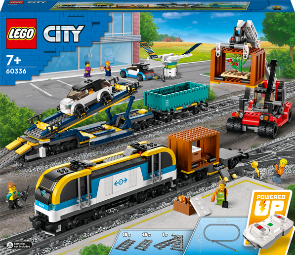 - Tato stavebnice představuje úžasný dárek pro všechny děti a milovníky vláčků! Dálkově ovládatelný model nákladního vlaku LEGO® City (60336) nabízí řadu autentických prvků a funkcí a obsahuje lokomotivu s technologií LEGO Powered Up, plošinový vůz se 2 kontejnery, otevřený vůz, dvoupodlažní vagón pro převoz automobilů a 33 dílů kolejí. Nekončící dobrodružství dále podpoří překladač, 2 elektromobily a 6 minifigurek. Pro děti a milovníky vláčků Součástí této úžasné stavebnice pro děti od 7 let je i jednoduchý návod na stavění ke každému z modelů. Děti si mohou hrát samostatně nebo stavět společně s kamarády nebo členy rodiny. Tak či tak je čeká úžasný stavitelský a herní zážitek. Více než jen hračka pro děti Stavebnice LEGO City dětem otevírají bránu do světa akčního hraní prostřednictvím inspirativních postav a modelů realistických vozidel a propracovaných budov. Při hraní se děti zároveň zábavným způsobem učí a dozvídají o okolním světě.