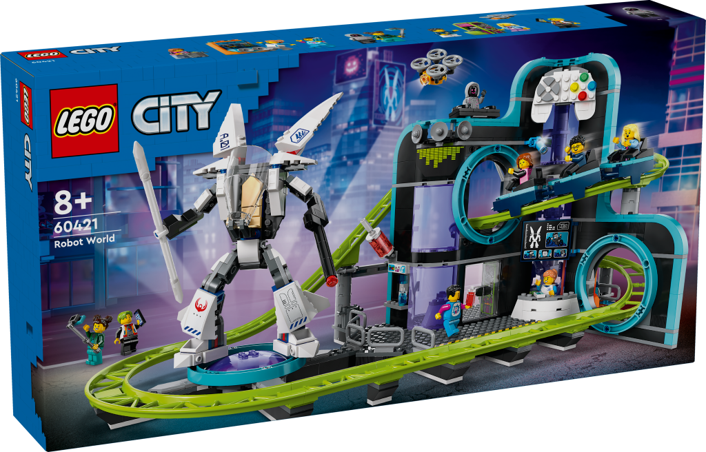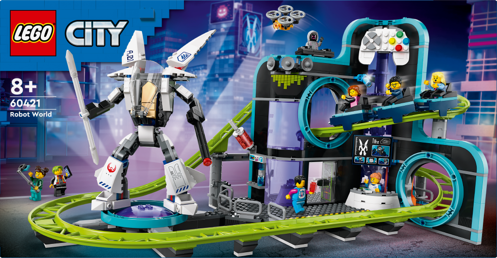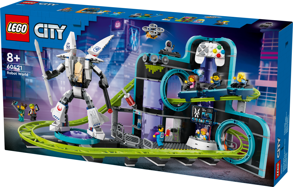- „Malí fanoušci videoher a zábavních parků si zamilují tento funkční model horské dráhy. Dobrodružná stavebnice LEGO® City (60421) Zábavní park Robotický svět je plná detailů, které stavitele inspirují k hodinám nápaditého hraní. Děti s vlakem se třemi vozíky prosviští futuristickým prostředím s motivem videoher, ve kterém najdou hernu s konzolemi, arénu na e-sporty, bar s ledovou tříští a spoustu dalších detailů. Součástí stavebnice je také pohyblivý robotický oblek a 8 minifigurek pro hraní na postavy a vyprávění příběhů. Součástí této kreativní stavebnice je podrobný tištěný návod na stavění a 3D pokyny v aplikaci LEGO Builder, což je digitální průvodce stavěním s intuitivními nástroji přibližování a otáčení. Umožní jim prohlížet si modely ze všech úhlů, zatímco na nich pracují. Ve stavebnicích z řady LEGO City na vás čekají parádní vozidla, realistické modely a zábavné postavy, které inspirují hraní bez hranic. Děti mohou tuto stavebnici LEGO City kombinovat s dalšími sadami z řady LEGO City (prodávají se samostatně) a rozšířit si tak svět herních možností.“