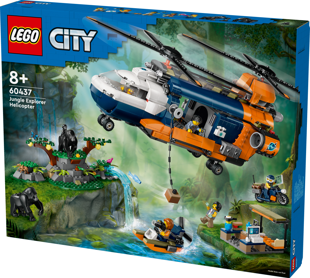 - „Potěšte svého malého průzkumníka dobrodružnou stavebnicí LEGO® City (60437) Helikoptéra na průzkum džungle v základním táboře pro děti od 8 let, která obsahuje realistickou helikoptéru se dvěma synchronizovanými rotory, 2 nákladové prostory a funkční naviják. Součástí stavebnice je také motorka, vrtulový člun a základní tábor v džungli, a tomu navíc 5 minifigurek dobrodruhů a 3 figurky goril, včetně gorilího mláděte, pro kreativní hraní a vyprávění příběhů. Součástí této herní stavebnice LEGO City s motivem džungle je podrobný tištěný návod na stavění a 3D pokyny v aplikaci LEGO Builder, což je digitální průvodce stavěním s intuitivními nástroji přibližování a otáčení. Umožní jim prohlížet si modely ze všech úhlů, zatímco na nich pracují. Stavebnice LEGO City představují skvělé vánoční nebo narozeninové dárky pro děti a součástí jsou parádní vozidla, realistické modely a zábavné postavy, které inspirují nápadité hraní bez hranic. Děti mohou tuto stavebnici s motivem džungle kombinovat s dalšími sadami z řady LEGO City (prodávají se samostatně) a rozšířit si tak svět herních možností.“
