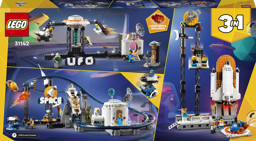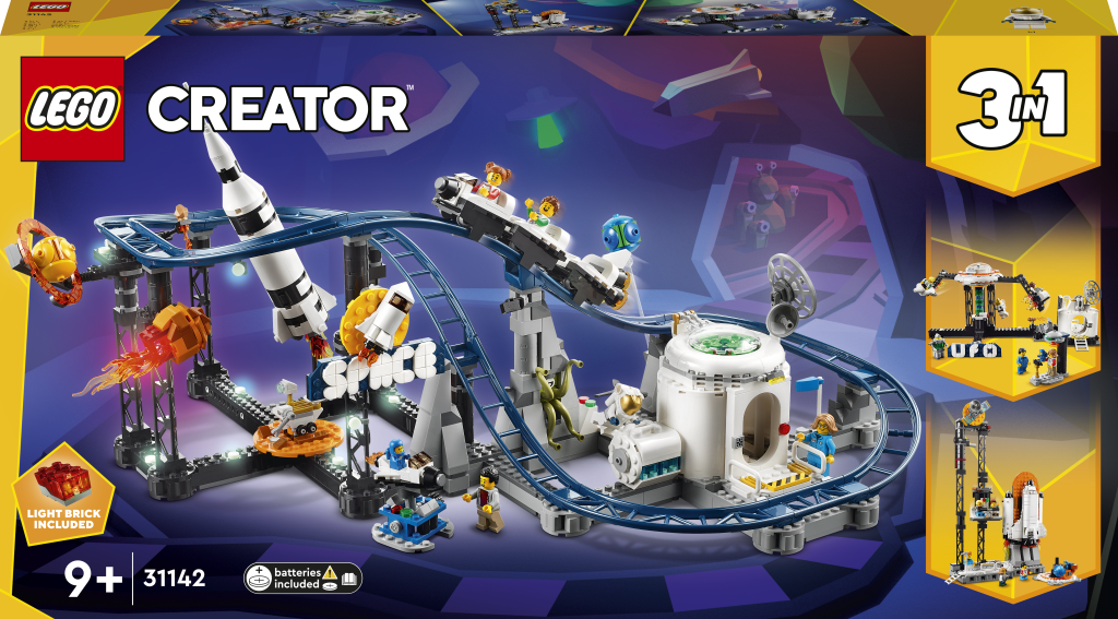 - 3 stavitelské zážitky v 1 sadě – Stavebnice LEGO® Creator 3 v 1 (31142) Vesmírná horská dráha děti vezme za zábavným hraním ve vesmíru se 3 různými modely, které mohou postavit a přestavit