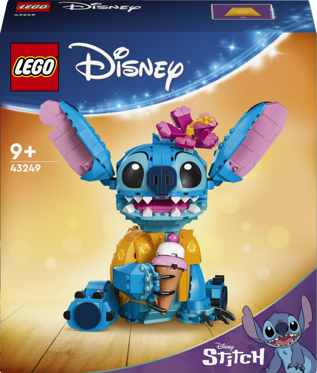 - Disneyho Stitch – Součástí této kreativní stavebnice LEGO® je výstavní model postavy z filmu Lilo a Stitch, kornoutová zmrzlina a květina, která postavu ozdobí