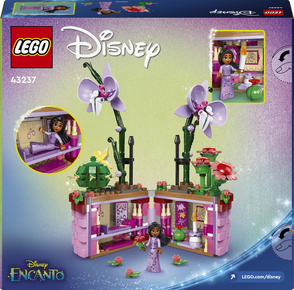 - Kreativní možnosti – Součástí stavebnice je otevírací květináč v podobě košíku inspirovaný filmem, květiny a minipanenka LEGO® | Disney Encanto Isabely